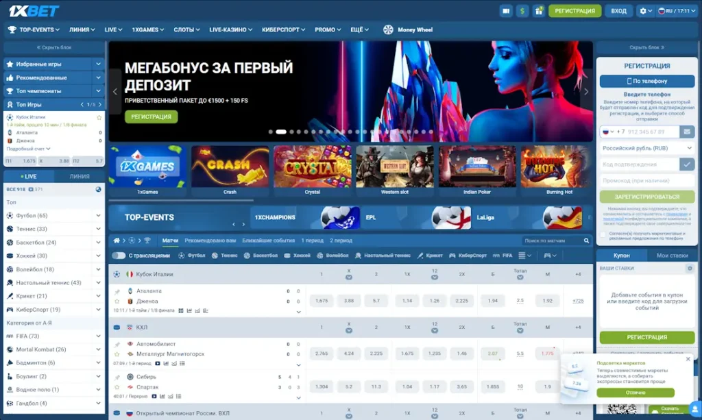 Сайт 1xBet отличается продуманным интерфейсом с удобной навигацией: главные разделы расположены на верхней панели и легко доступны даже новичкам без опыта. Основные разделы включают казино с автоматами от ведущих мировых провайдеров (NetEnt, Pragmatic Play, Microgaming, Novomatic), широкую линию ставок на спорт с 1000+ событий ежедневно, live-раздел для пари в режиме реального времени, киберспорт, а также ТВ-игры и лотереи.